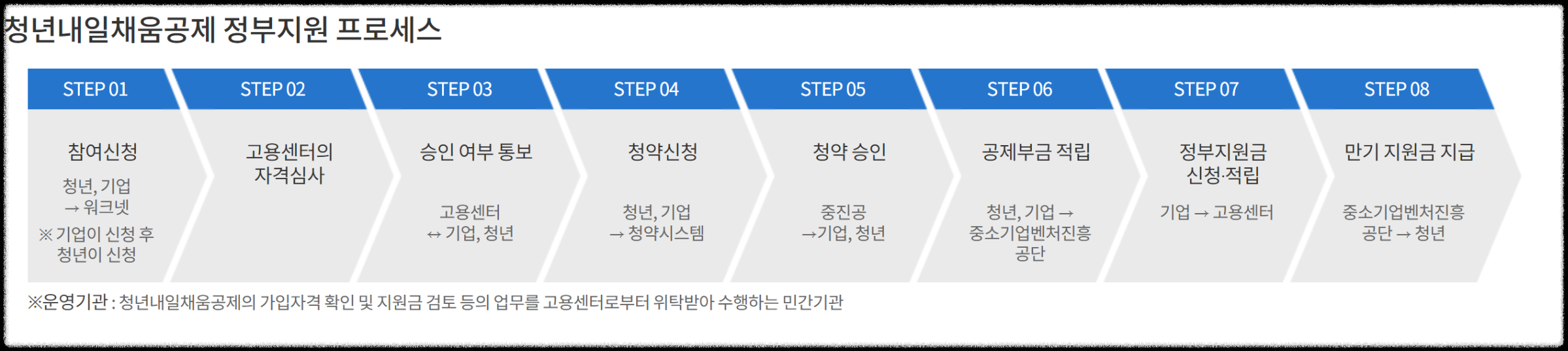 - 23년부터는 고용센터를 통해서 업무전반을 처리하고 상담하며, 기가입자의 경우 관리는 민간위탁운영기관에서 수행